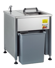 In einem SBM 1 Kompaktsystem findet die Zerkleinerung und Dehydrierung gleichzeitig statt. Solche Anlagen passen selbst auf engsten Raum, die kleinste Stellfäche beträgt in der Breite 750 mm, in der Tiefe 950 mm.